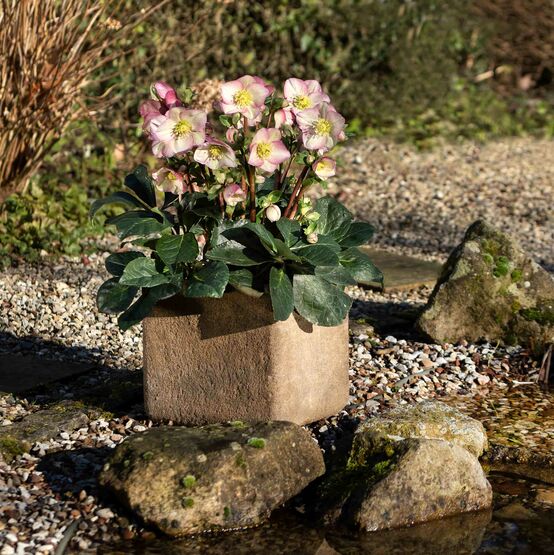 Helleborus x iburgensisThe two-tone flowers of Ice N' Roses® Rosetta not only have the undivided attention of plant lovers. Wild bees also visit the pink flowers during the flowering period from mid-January, as soon as the temperature is above freezing. Rosetta is ideal as a bedding plant and also looks great in large containers.